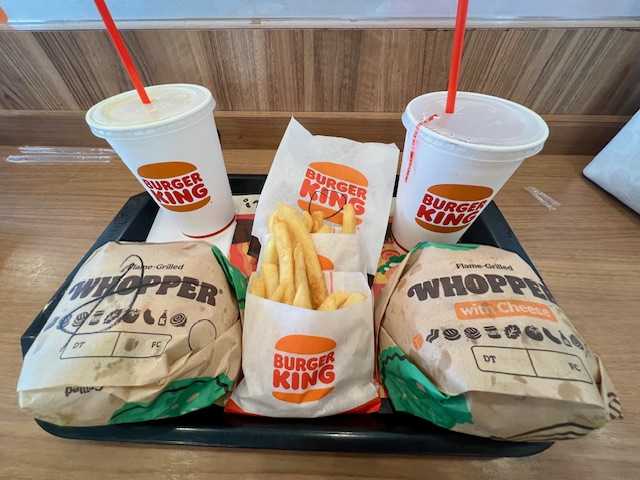 ★ 6月29日(日) 🌞 ★今日はお昼前から旦那君と〈大井町〉の家電量販店に行ってきましたちょうどお昼だったので旦那君のリクエストで《バーガーキング》でランチ《バーガーキング》の『ハンバーガー』はサイズも大きくてパテも厚くてボリューミー(小さいサイズの「Jr」もあるけどね)(๑´ڡ`๑)オイシイ~~~♪おなかいっぱいになってお買い物をして・・・キャロトモはその足で〈蒲田駅〉でみどりこさん&Kちゃんと待ち合わせ以前預かっていた「ハンドタオル」で作った『ミニ台ふきん』を渡して・・・用事を済ませて、夕方ふたりとはバイバイ(* ̄▽ ̄)ノ~~マタネ~~~♪家に帰ってきて夕食の準備メニューは『フライ』3種類油で揚げるだけで簡単なのよ~~~『千切りキャベツ』は≪スーパーベジタリアン スライサー≫で”シャカシャカ”したのよスーパーベジタリアン スライサーφ_(*^▽^*)_ψいただきま~~~す(๑´ڡ`๑)オイシイ~~~♪デザートは『ドーナツ』ゝ(* ̄◇)=3オナカイッパイ*********************ブログランキングに参加中ですよろしかったら↓を“ポチッ!”してね♪ ☆★☆琴&鈴ちゃんニット☆★☆☆★☆ 旅行日記 ☆★☆☆★☆ お散歩日記 ☆★☆