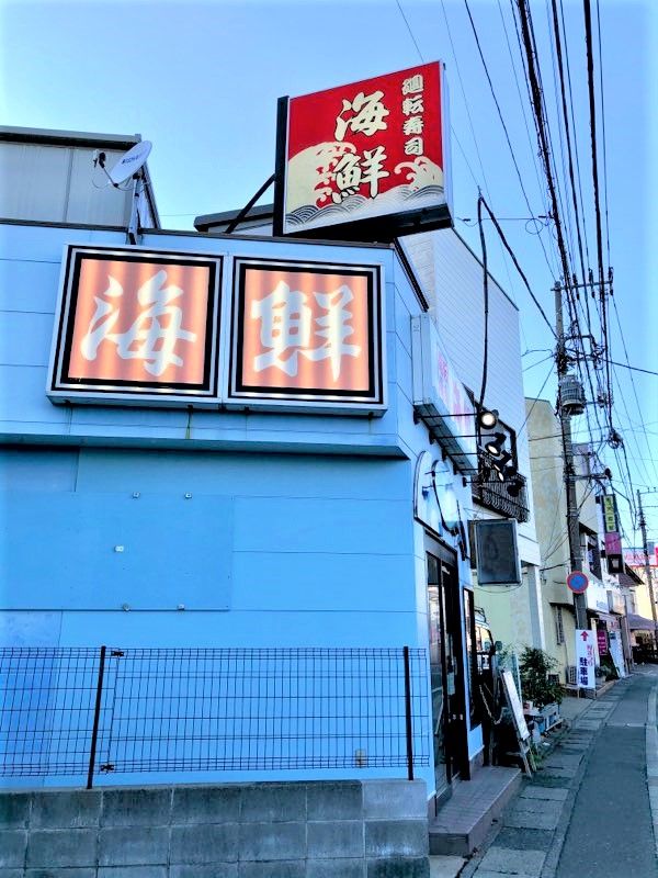 夕食は《三浦海岸駅》近くの[廻転寿司 海鮮]