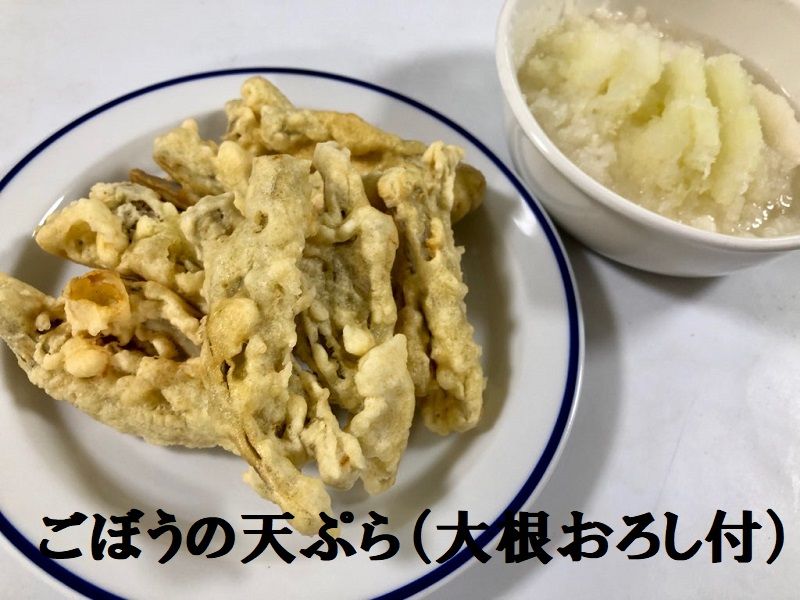 『ごぼうの蒸し揚げ』『ごぼうの天ぷら』『ツナサラダ』