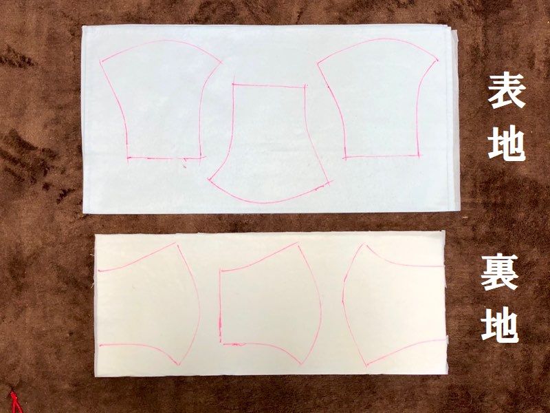 裏地は白の生地(これにも接着芯貼った)