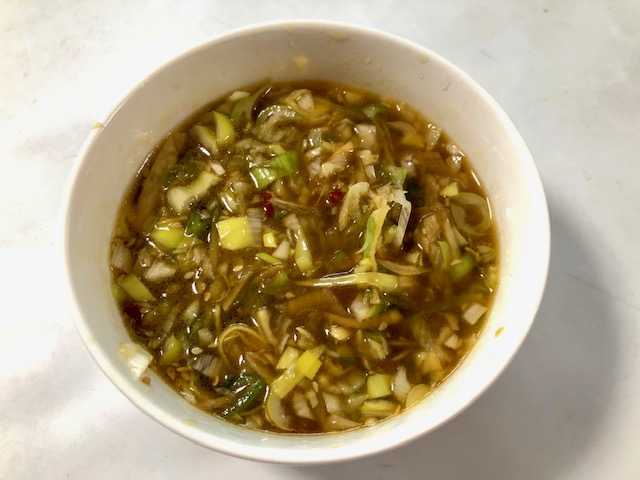 「みじん切りの長ねぎ」を入れて「たれ」を作って
