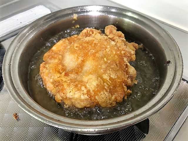 片栗粉をまぶして揚げた「鶏もも肉」にかけました