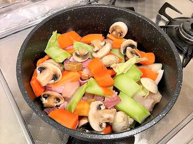 コンソメを入れて(水は入れない)