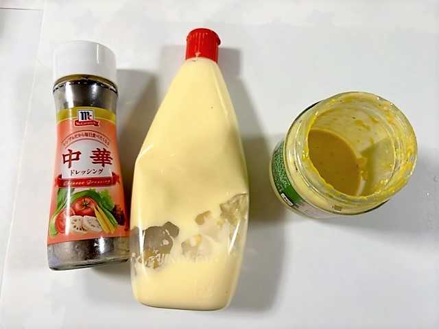 「マヨネーズ」&「中華ドレッシング」足して混ぜて・・・