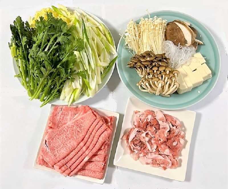 お肉は『黒毛和牛ロース薄切り』&『国産豚極薄切り』