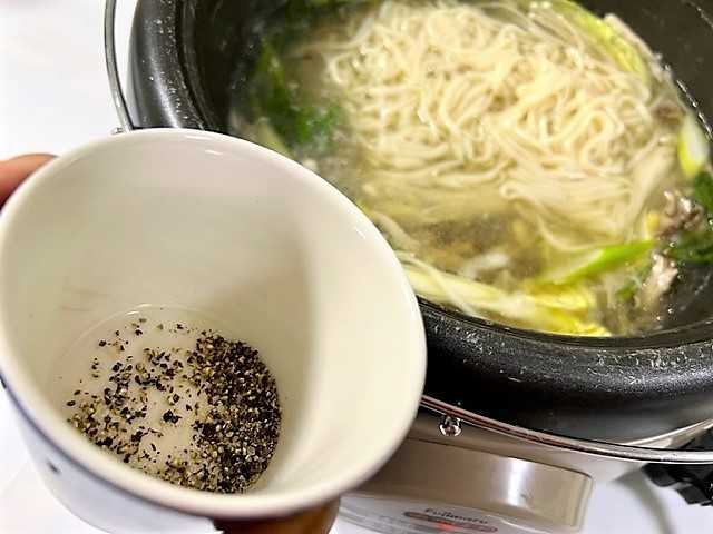 器に塩・コショウを入れてスープで割って
