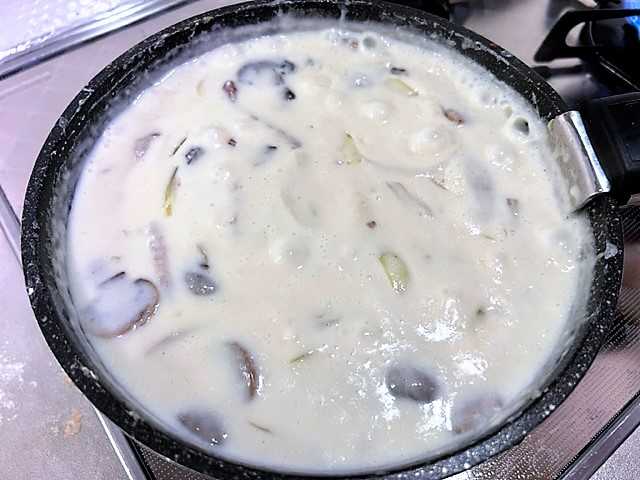 少しづつ牛乳を入れて「ホワイトソース」作って