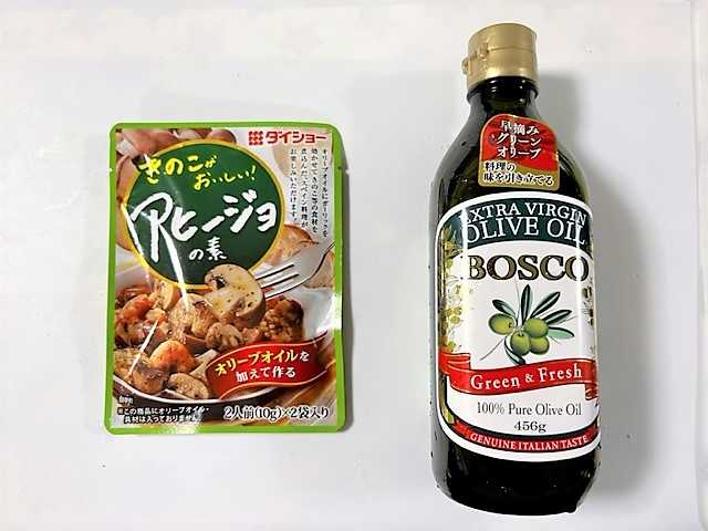 「アヒージョの素」「オリーブオイル」で10分位煮て