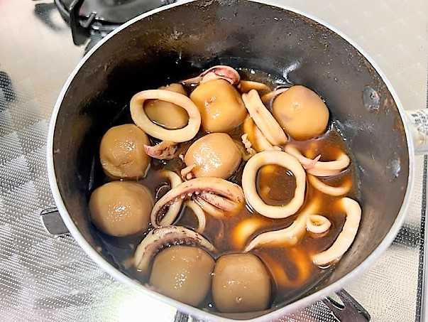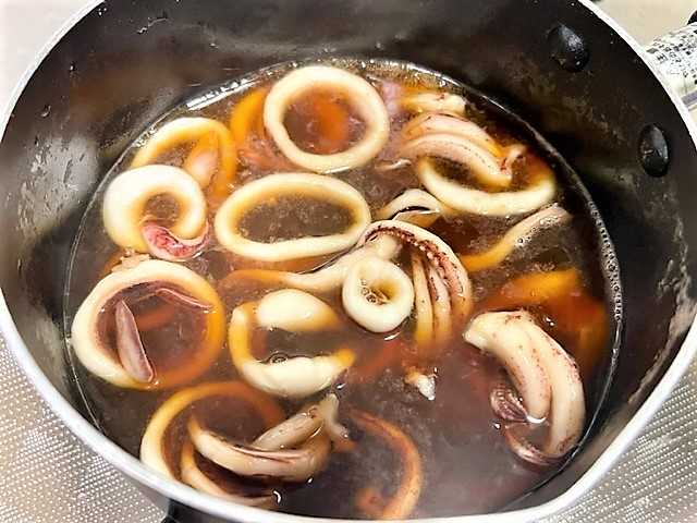 煮汁(料理酒・みりん・砂糖)で「イカ」を