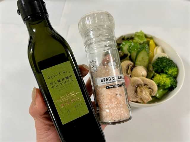 「オリーブオイル」&「ピンクソルト」でサッパリと