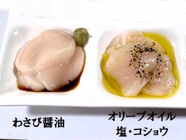 『ホタテ』はお刺身(わさび醤油)と