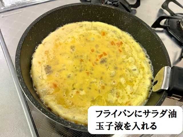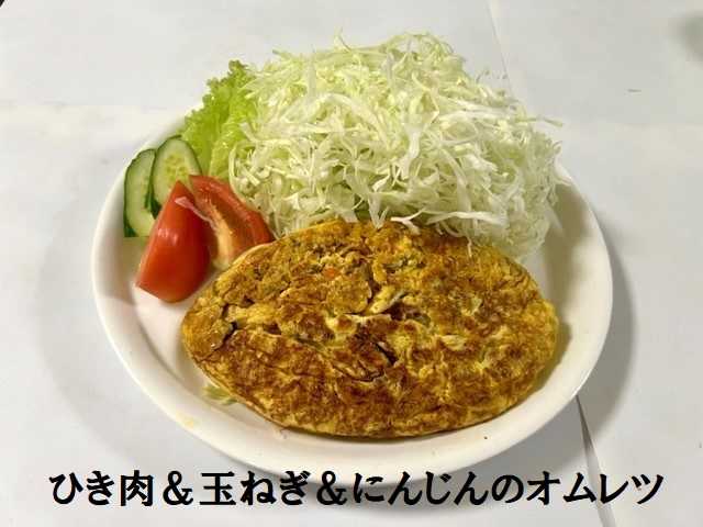 『ひき肉&玉ねぎ&にんじんのオムレツ』