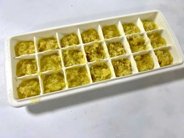 全部すりおろして製氷皿に入れて冷凍