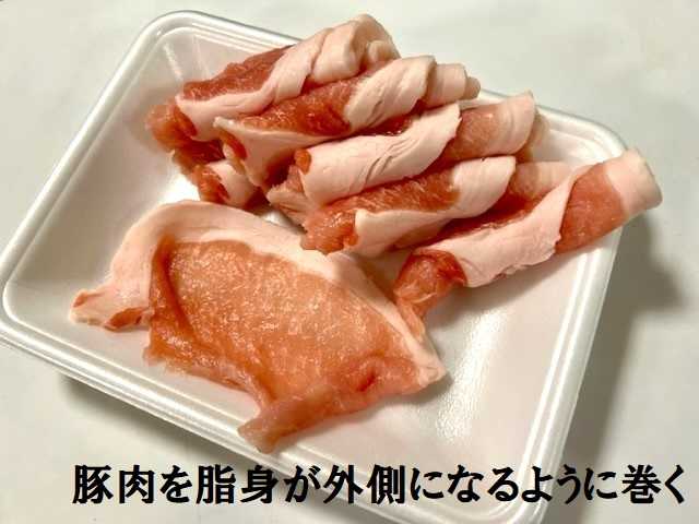 『豚のロール生姜焼き』は薄切りの豚肉で