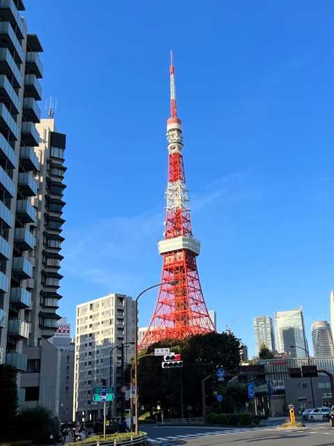 ↓の〈赤羽橋駅〉近くから見る『東京タワー』