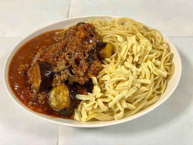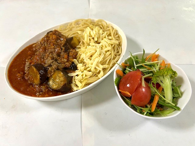 下に「ミートソース」上に「スパゲティ―」を入れて