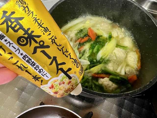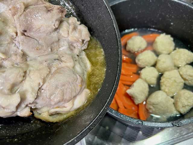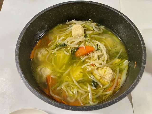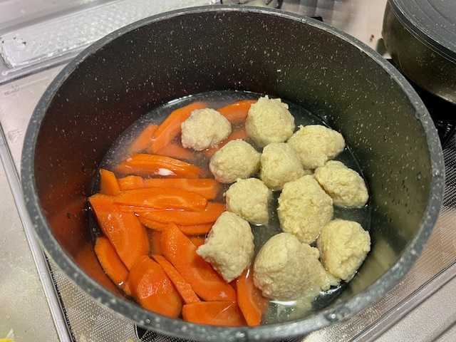 「鳥だんご」(冷凍してあった)と「にんじん」を煮て