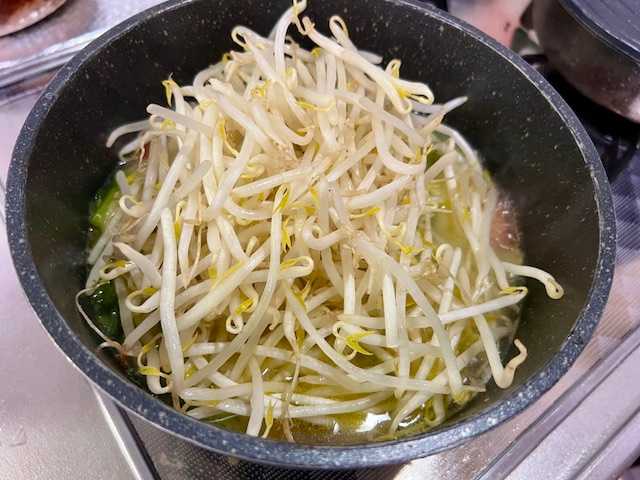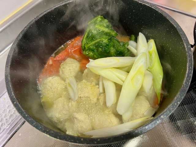 「長ねぎ」「かぶの葉」(冷凍してあった)を煮て