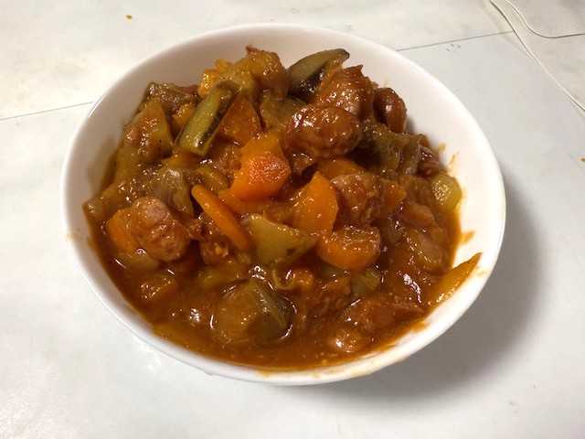 途中「なす」を入れて水分が少なくなるまで煮込む