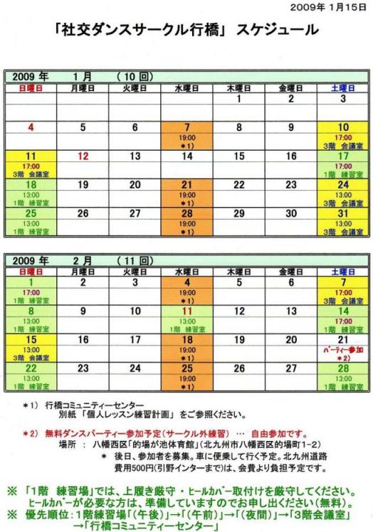 先日連絡させて頂きました、八幡西区 「的場が池体育館」 の無料ダンスパーティーに参加(サークル外練習を行ないます)することを決定しましたので2月21日(土曜日)のコスメイトの練習は中止いたします。 尚、この対応として、代替練習日 2月11日(祭日)を追加しました。 <変更内容は、次のとおり>(1) 2月11日 水曜日(祭日) 13:00~17:00 コスメイト1階練習室 …合同練習を追加(2) 2月21日 土曜日 12:00 より 八幡西区「的場が池体育館」ダンスパーティー参加予定 … 合同練習は中止 入場料 : 無料 場 所 : 北九州市八幡西区的場町1-2 北九州道路、引野(黒崎)インターを出て永犬丸方向へ直進 ※ 参加は、自由です。 昨年12月行橋市国際交流実行委員会主催のクリスマス・チャリティー ダンスパーティーの参加者は、大変楽しかったとの印象でしたので、今回 無料で大きなイベント(昨年は、380名の方が参加)なので計画しました。 後日、参加者を募集して、車に便乗して行く予定です。尚、九州道路費用 500円(引野インターまで)は、会費より負担予定です。<スケジュールは、次のとおり変更しました>