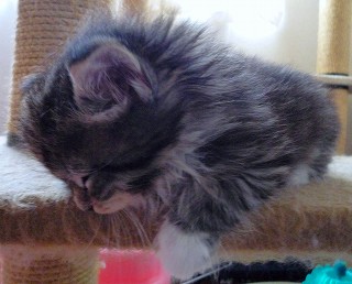 またまた、3連休ですね寒さと乾燥が気になるお天気ですが、ご成人式にご参加の方々は華やかな時ですね。この数日は寒いので、皆様お気をつけて下さい。私は乾燥から、風邪で寝込む羽目に部屋の温度管理と子猫達の躾(トイレや爪とぎなど)や離乳食の世話。この数日は、寝て起きて、寝て起きての不規則な生活をしていました。寒さと疲労もあって、寝込む事に…。子猫達は、トイレに間に合わなくて鳴いたり、1匹で用足しする際も鳴いて呼びます。寝ていても、鳴き声が気になって夜中に何度も、起こされてしまいます。風邪引いてからは、鼻が詰まって息が出来なくて寝苦しいです。あぁぁぁ…、熟睡したい離乳も、無事に終わりました。食べる時に、何故か皿を噛んで食べられない子猫上手く食べられなくて…、周囲にボロボロにこぼして食べる子もいました遊んでいて、タワーに登って降りられなくなったり。各自が完全自由に遊んでいるので、その呼び声に振り回されております集団成長すると、良い事も間違いも覚えやすい時期です。躾も含めて、良い個性を伸ばしてあげたいと思っています。子猫達は、元気に成長中です本日は、少し成長した子猫達の画像ですマイペースに、育っております。宜しければ☆ぽちっとお願いします design by sa-ku-ra*