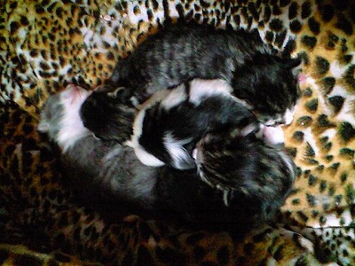 数分後、白の色が多い「お茶目な」子猫が誕生しました。