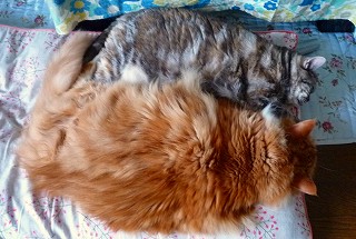 メインクーンとアメショーの、種族を超えた愛なのか。