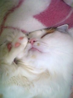 本日の画像は、メインクーン美猫三毛のエル&ノアちゃんの飼い主様から「ノアちゃんの寝姿」をいただきました。
