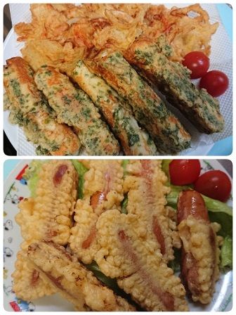 天ぷらと言っても少量の油で焼き揚げした感じです。