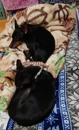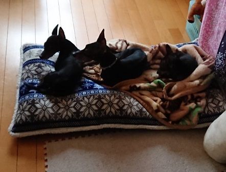 鼻をかむ私を見つめる今朝のワン達~ぽっ