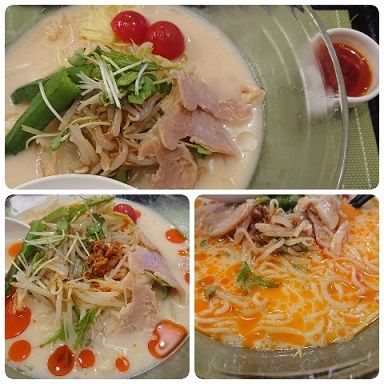 冷たい麺で冷やしちゃんぽん白、冷やしまぜめん黒