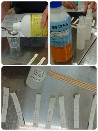 まずはボトルに無水エタノールとグリセリンを入れます。