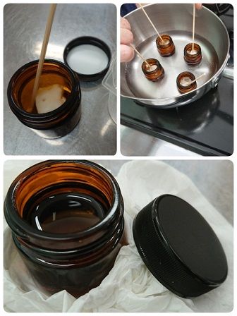 お鍋に容器が半分浸かる位の水を入れて湯煎します。