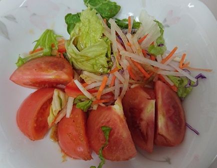このサラダとお豆腐と5枚切りトーストを1枚。