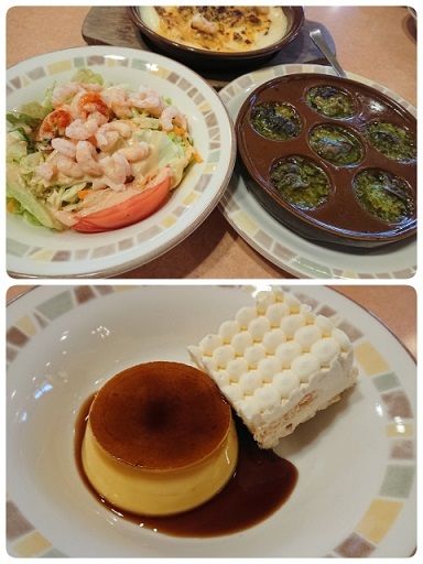 私はサラダ半分とエスカルゴ3個でちょっと控えめにしたので