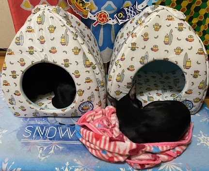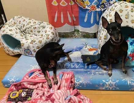 マースはブランケットを持って来て床づくりをし