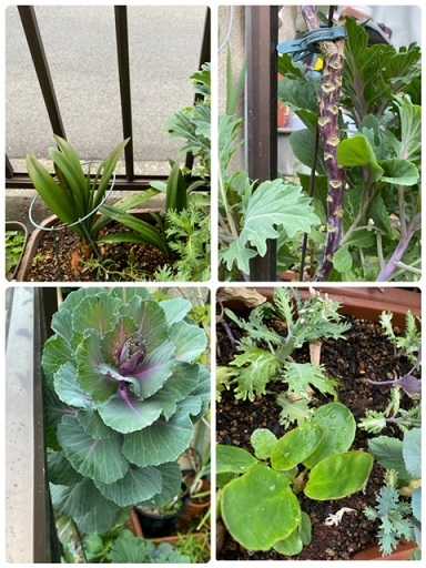 右上の葉牡丹の太い茎ですが花が咲いたのを切ったら