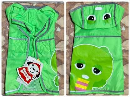 ワンコ用のガチャピンレインコート500円。