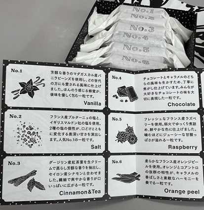 4.チョコレート 5.ラズベリー 6.オレンジピール