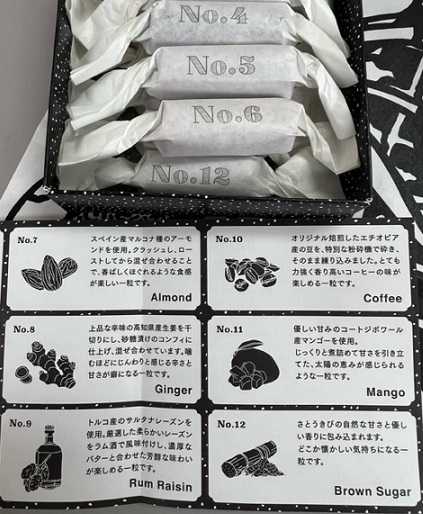 フレーバーごとにナンバリングされた個包装で