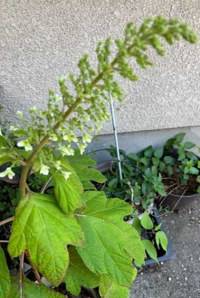 挿し木の柏葉紫陽花も下の方から花が咲いてきましたよ