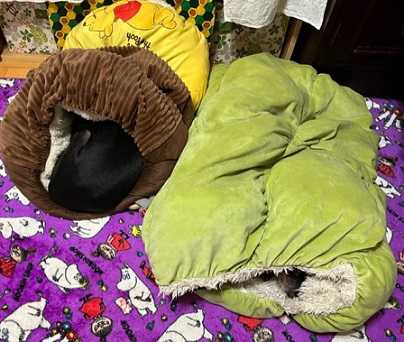 レイア以外はホイホイの上で丸くなっていました。