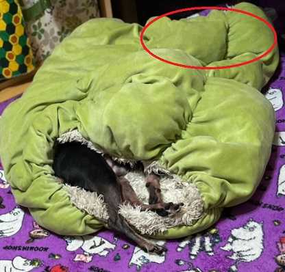 レイアは毎度の赤丸部分に潜り込んでいます。