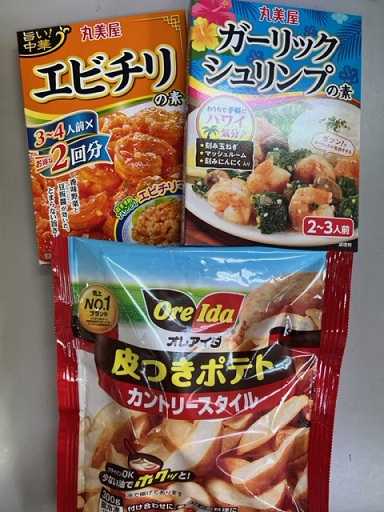 丸美屋の「エビチリの素」と「ガーリックシュリンプの素」
