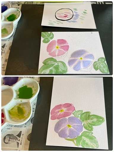 水のふくみ具合で色が変化するので、はじめは薄く入れます。