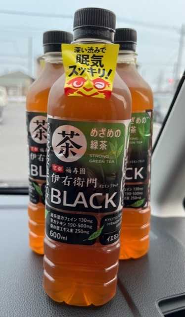 サントリー緑茶「伊右衛門BLACK」3本です。