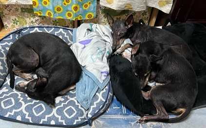 1ワンと2ワンに分れて寝ています。