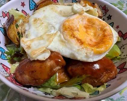 丼の中に野菜と肉と卵~あり合わせの具材だけでも
