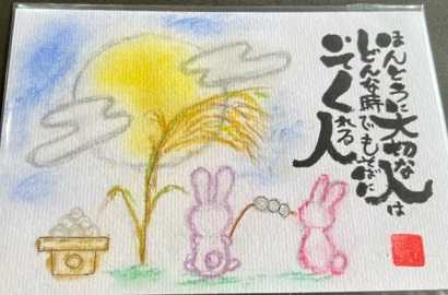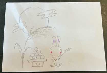 今月は、中秋の名月がテーマ。鉛筆で練習です。