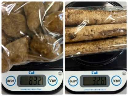 けっこうな量の里芋は200円、ごぼうは100円でした。